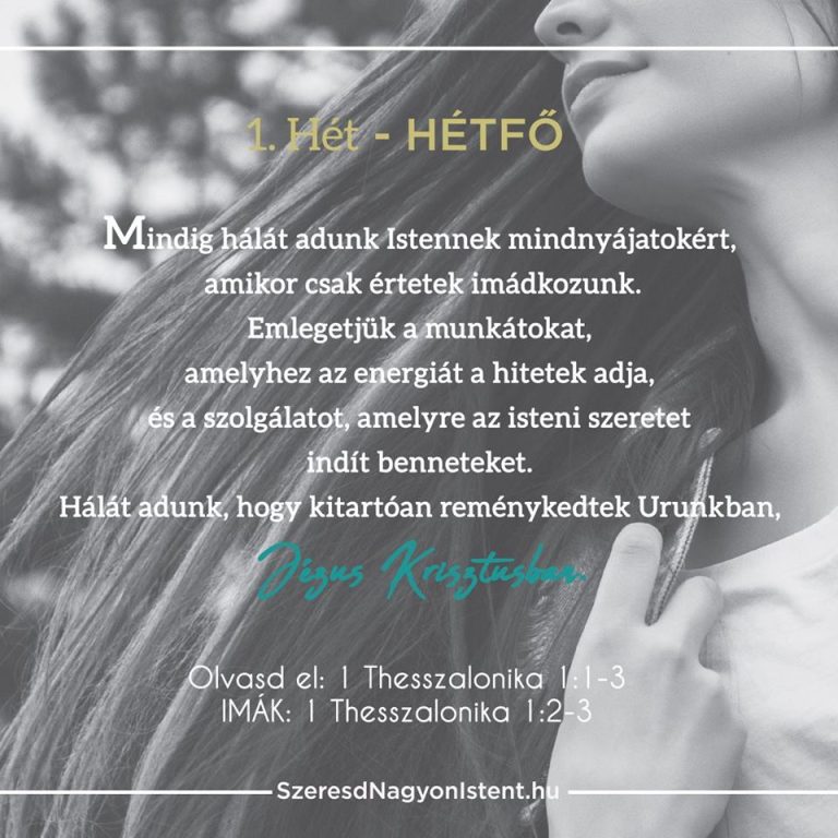 Uram, kérlek, segíts nekem imában hálát adni, és nem elfelejteni, hogy folyamatosan imádkozzak Krisztus testének növekedéséért! Segíts, hogy növekedhessünk hitben, reménységben és szeretetben, és hogy teljesen Neked szánt szívvel éljük meg a hitünket! Ámen.