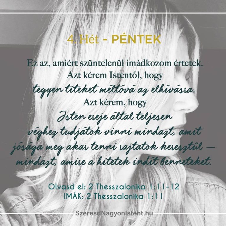 Uram, szeretnék hozzád méltón, Téged megdicsőítve járni ezen a héten. Erősítsd meg a szívemben és szeretteim szívében a szilárd hitet. Ámen