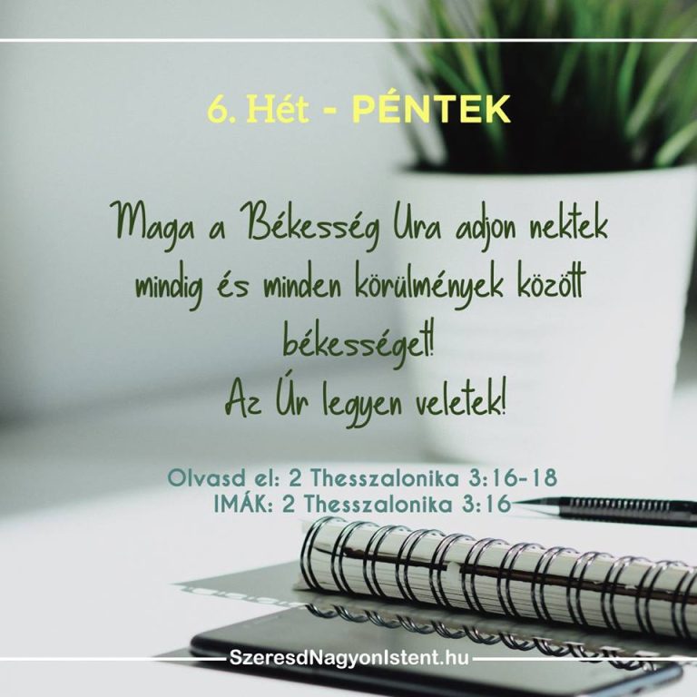 Uram, tölts el a Te békességeddel ma. Segíts, hogy a Te jelenlétedre figyeljek és ne az én gondjaimra. Ámen