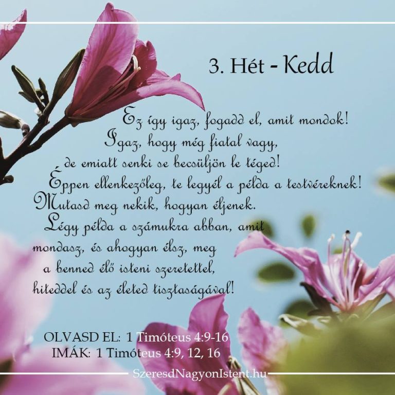 Timóteus egy olyan helyzetbe csöppent, amelyben a nála idősebbek egy olyan dolgot nem szerettek benne, amit nem tudott megváltoztatni, mégpedig az életkorát. Úgy gondolták, hogy Timóteus túl fiatal, és az életkora miatt megvetették. Pál azonban mégsem azt tanácsolja neki, hogy álljon le vitatkozni ezekkel a hívőkkel. Helyette arra bíztatja Timóteust, hogy mutasson példát. Te se vitatkozz másokkal, hiszen az sehová se vezet. Élj inkább olyan életet, amelyről sugárzik, hogy mélyen gyökerezik Krisztusban. Ahelyett, hogy rájuk és a támogatásuk hiányára koncentrálnál, legyen az életed középpontja Jézus: szeress másokat, légy hűséges az apró dolgokban, és legyenek tiszták a gondolataid, a szíved és a tested.