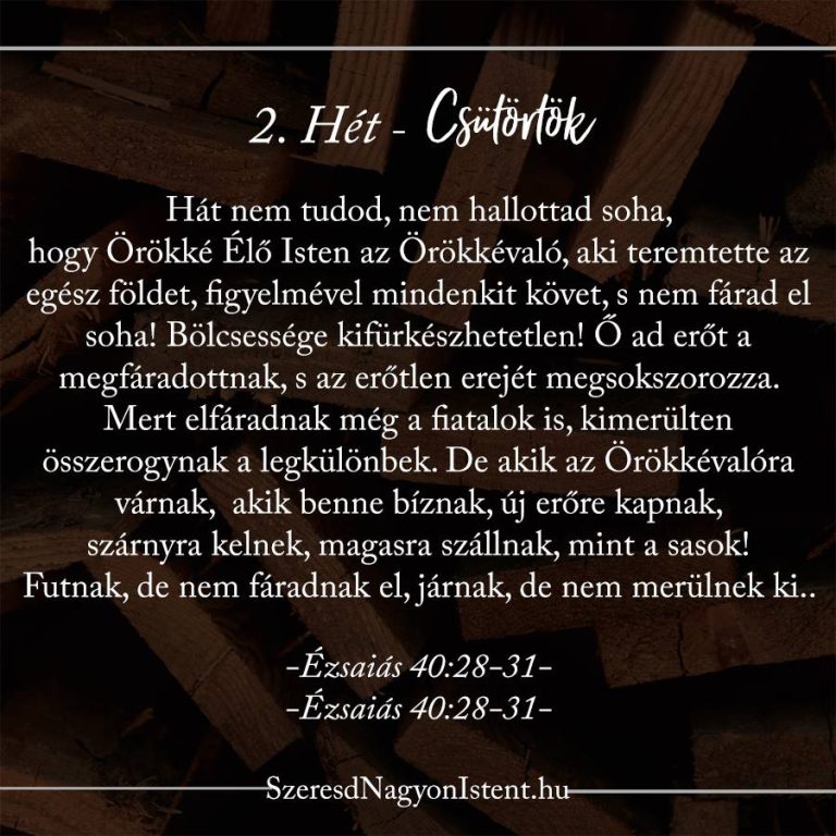 Mennyei Atyám, hálás vagyok Neked a Te hatalmadért és a Te erődért, ami segít nekem elkötelezettnek maradni melletted. Uram, kérlek, amikor megkísértetem azzal, hogy feladjam, emlékeztess arra, hogy nem a magam erejére vagy akaratára kell hagyatkoznom, hanem kizárólag a Te Szent Lelkedre. Jézus Nevében, Ámen.” (youversion)