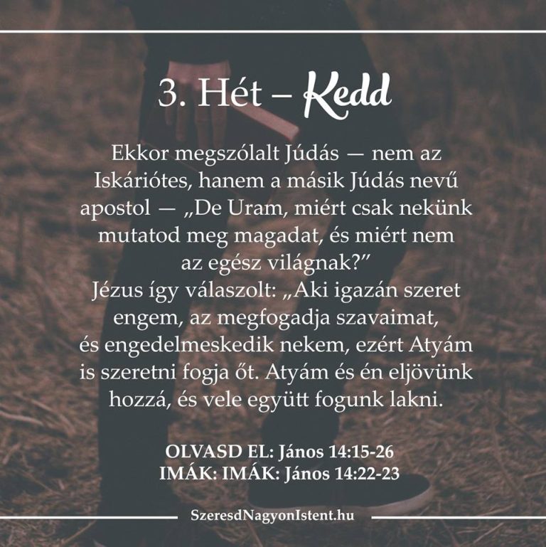 Mennyei Atyám, Köszönöm Neked, hogy a Szent Szellem aki bennünk él, vezet és a Te igazságodra tanít minket. Köszönöm, hogy a Te Igéd elérhető számunkra, olvashatjuk és tanulmányozhatjuk azt. Uram, kérlek, hogy fejleszd a lelki látásomat és világnézetemet, hogy az én értelmezésem a Tiedhez igazodjon. Jézus nevében kérlek, Ámen. (YouVersion)