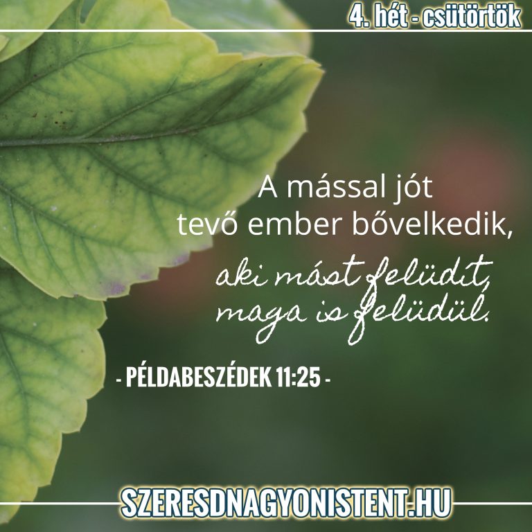 IMÁK: “A mással jót tevő ember bővelkedik, és aki mást felüdít, maga is felüdül.” (Példabeszédek 11:25)