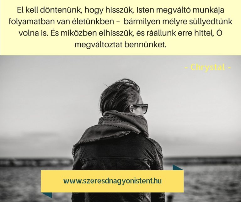 El kell döntenünk, hogy hisszük, az Ő megváltó munkája folyamatban van életünkben – bármilyen mélyre süllyedtünk volna is. És miközben elhisszük, és ráállunk erre hittel, Ő megváltoztat bennünket.