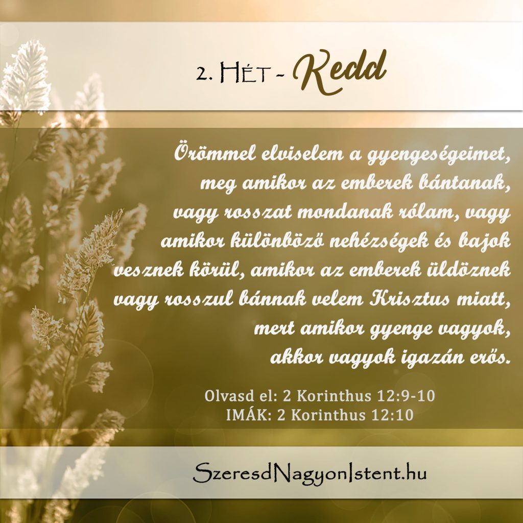 „Örömmel elviselem a gyengeségeimet, meg amikor az emberek bántanak, vagy rosszat mondanak rólam, vagy amikor különböző nehézségek és bajok vesznek körül, amikor az emberek üldöznek vagy rosszul bánnak velem Krisztus miatt, mert amikor gyenge vagyok, akkor vagyok igazán erős.” – 2 Korinthus 12:10