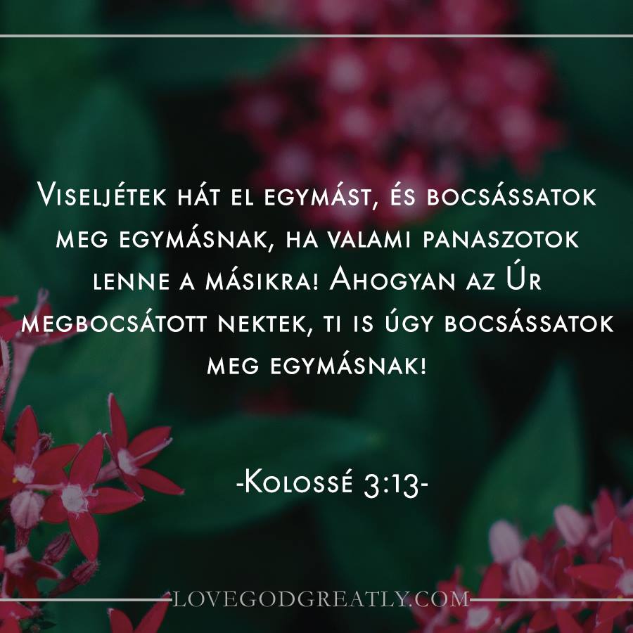 Az Efézus 4:32 így szól: „…legyetek mindig kedvesek és együtt érzők! Bocsássatok meg egymásnak, amiként Isten is megbocsátott nektek Krisztusban!.”