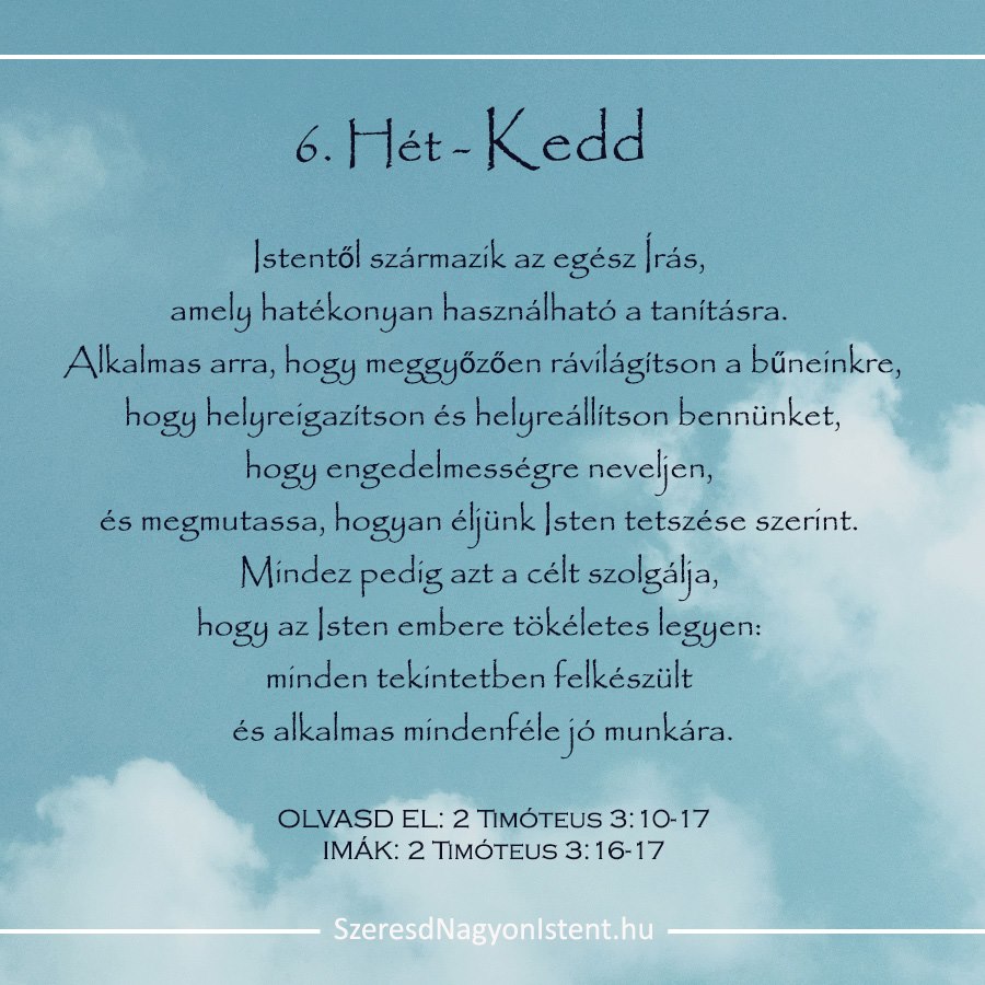 „Igen, hirdesd Isten szavát az embereknek akár kedvező, akár kedvezőtlen a helyzet!” – 2 Timóteus 4:2 „Te azonban, Timóteus, tarts ki amellett, amit tanultál, és amiről meggyőződtél, hogy igaz! Hiszen jól ismered azokat, akik ezekre az igazságokra tanítottak téged. Már gyermekkorod óta ismered a szent Írásokat is, amelyekből megértheted a megmenekülés titkát. Ez a megmenekülés […]