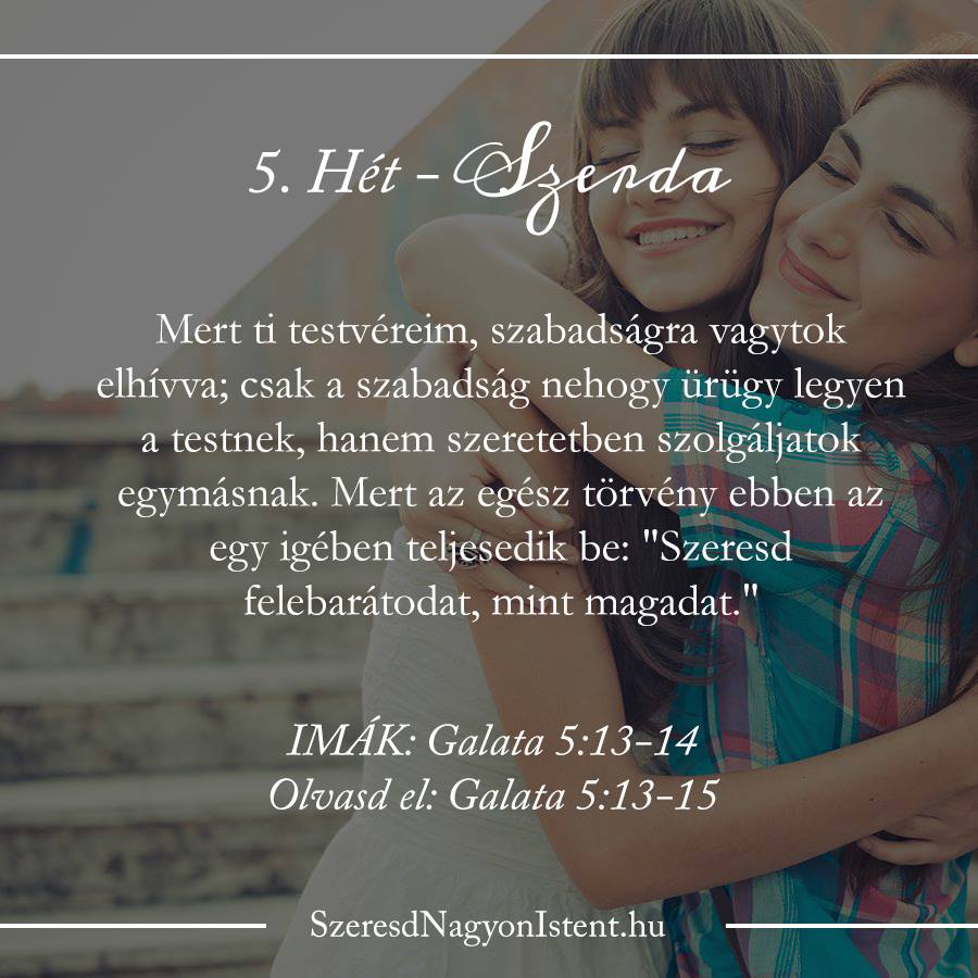 „Az egész Törvény ugyanis ebben az egy mondatban foglalható össze: Szeresd embertársadat, mint saját magadat!” – Galata 5:14 „Testvéreim! Isten benneteket szabadságra hívott el! Csakhogy ezt a szabadságot ne a régi emberi természet kívánságainak kielégítésére használjátok, hanem inkább szeretettel szolgáljatok egymásnak! Az egész Törvény ugyanis ebben az egy mondatban foglalható össze: Szeresd embertársadat, mint saját […]