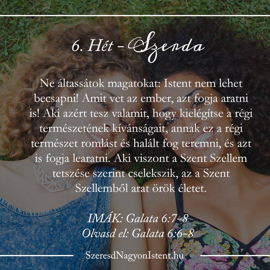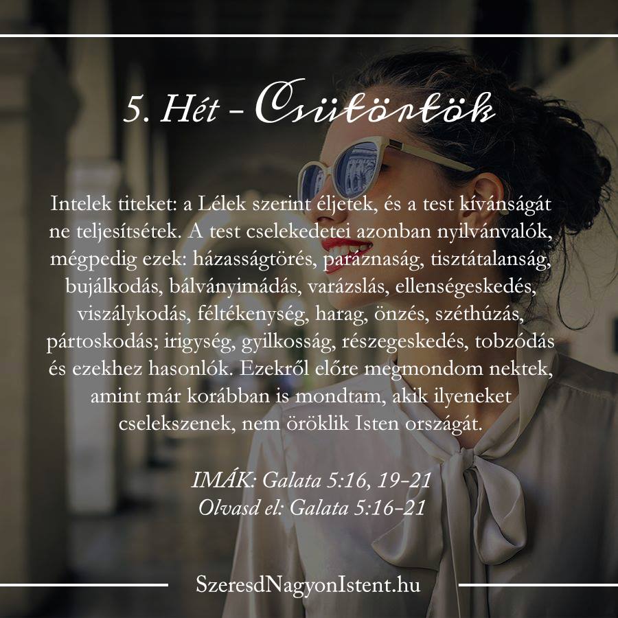 „Pál figyelmezteti a hívőket, hogy mondjanak le a természeti vágyaikról és annak mohóságáról. Azt állítja, hogy a hívőknek állhatatosan és szorgalmasan kell Szellemben járniuk, azért, hogy ne legyenek megkísértve abban, hogy a Krisztusban kapott szabadságukat és függetlenségüket arra használják, hogy közreműködjenek a test cselekedeteiben. A test milyen cselekedeteivel, kívánságaival küzdesz? Ez a te viselkedésed, a […]