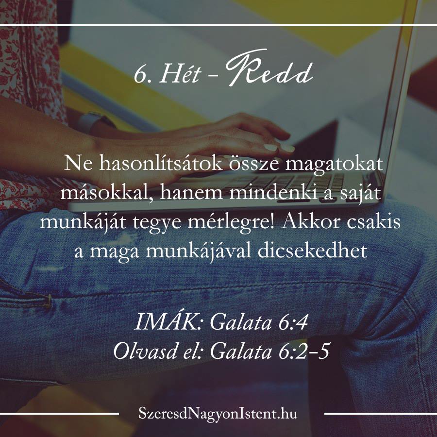 “Pál arra bíztatja a galatákat, hogy hordozzák egymás terhét, és csak azon dolgok felől örvendjenek, amiket az Úr tett értük. Sokan hajlamosak vagyunk arra, hogy saját hibáinkkal szemben toleránsak legyünk és igazoljuk tévedéseinket, miközben a mások hibáit kritizáljuk és elítéljük. Ha ez gyakorta megtörténik, megkeményedik a szívünk és megfeledkezünk arról, hogy milyen nagy szükségünk van […]