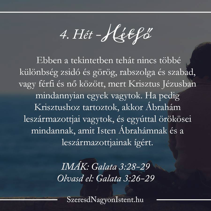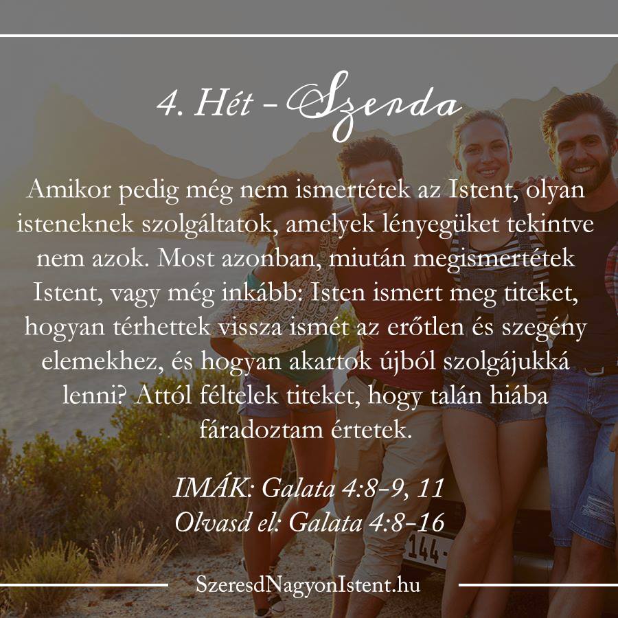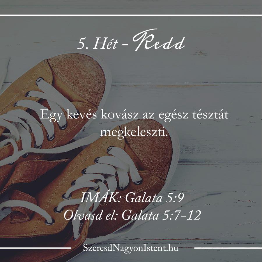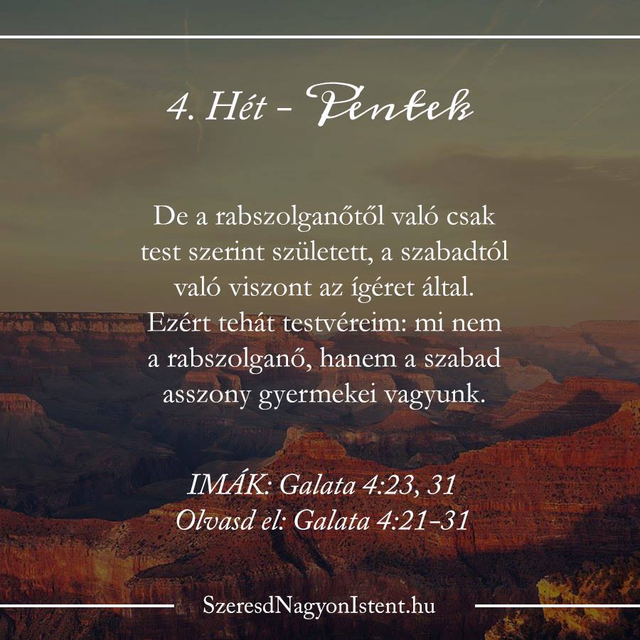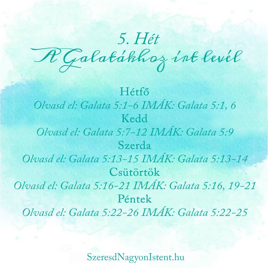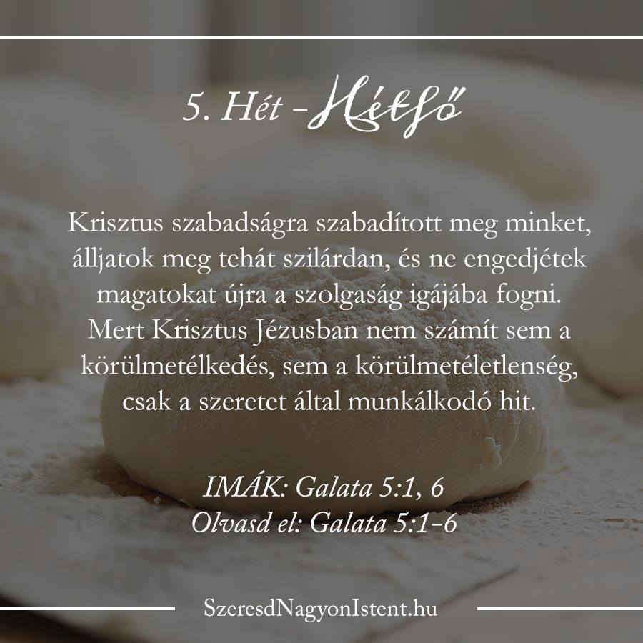 Kihívás: Ezen a héten fordíts időt arra, hogy imádkozz és megvizsgáld az életedet. Van olyan terület, ahol a “szolgaság igájával” küszködsz akár egy bizonyos bűn vagy egy törvényeskedő vágy miatt, hogy “megtartsd a törvényt”? Add át Istennek és kérd meg, hogy segítsen téged magadhoz ölelni a szabadágot, amelyet Ő vásárolt meg számodra!