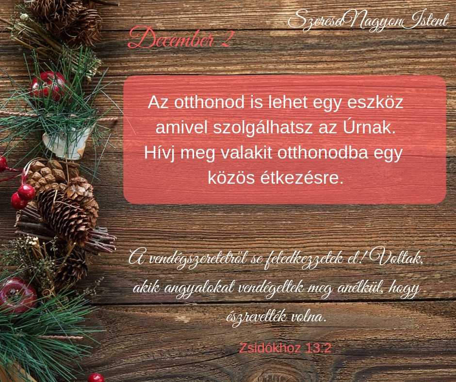 Két héten át mind együtt leszünk, bárki, aki már tanulmányozott vagy szolgált velünk, bárki, aki még csak most csatlakozik hozzánk először, szeretettel várjuk December 2-től 16-ig Facebook csoportunkba: Ádventi Közösség – “Szeresd Nagyon Istent” Nőknek https://www.facebook.com/groups/282098319103625/ Mire számíthatsz? Heti három ádventi elmélkedés egy-egy bevezetővel az SZNI szolgáló hölgyektől. A többi nap karácsonyi ötletek, készülődés, hangolódás […]