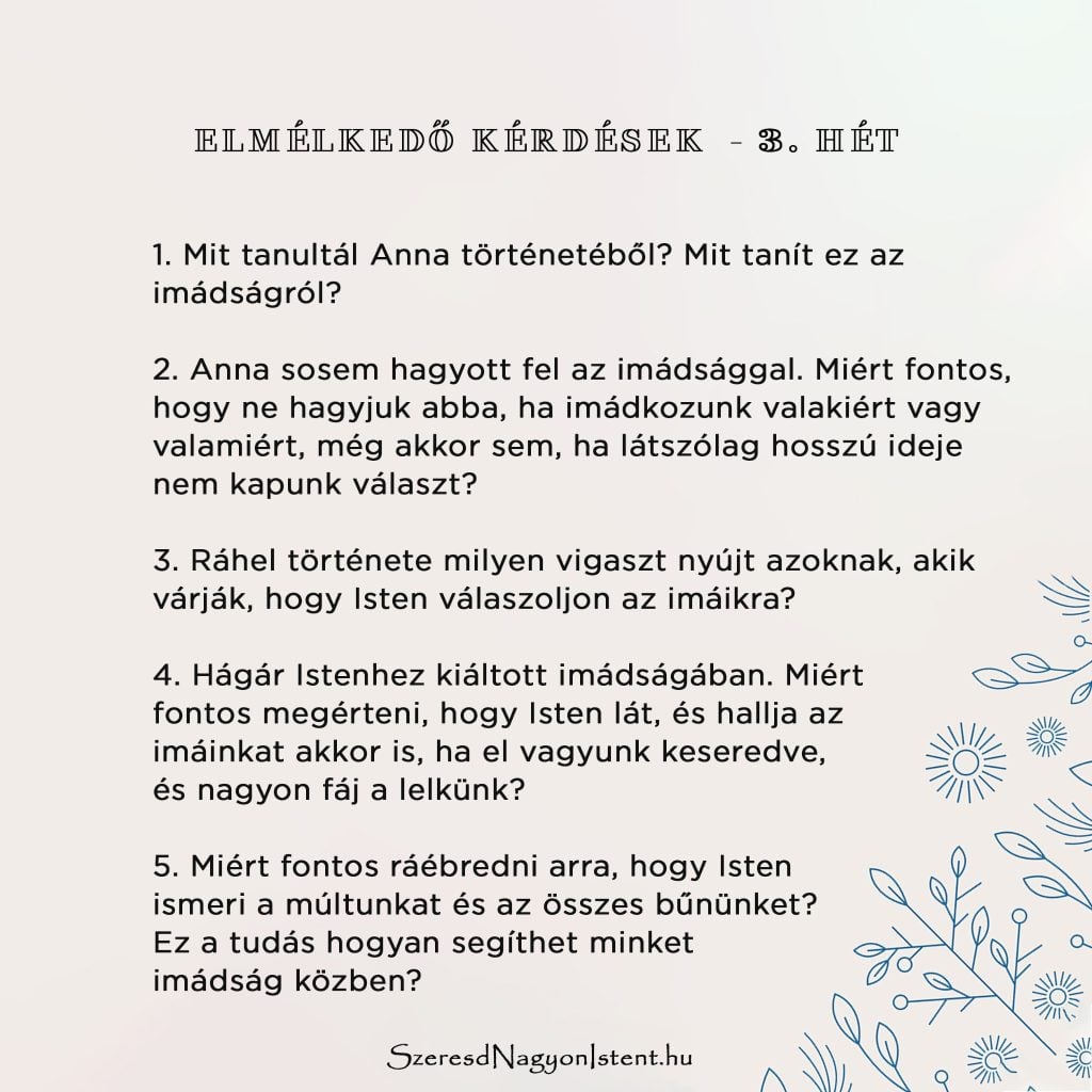 3. heti kihívás: Van az életedben nagy imaharcos? Ezen a héten szánj időt arra, hogy bátorítsd őt és mondd el neki, hogy az imáinak milyen hatása van az életedre!