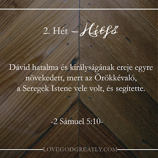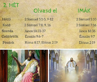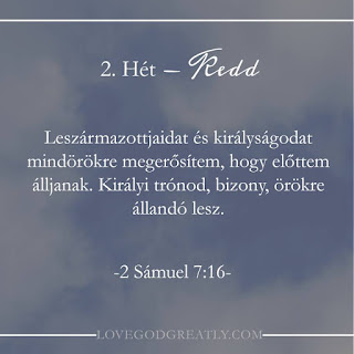 Olvasd el: 2Sámuel 7:8, 9, 16 IMÁK: 2 Sámuel 7:16 Dávid királyságának időbeosztását nem a saját ambíciója határozta meg, hanem Isten. Ugyan szeretett volna templomot építeni az Úrnak, de az Úr terve sokkal nagyobb lélegzetvételű volt Dávid számára, mint amit meg tudott volna érteni. Isten megígérte, hogy megőrzi Dávidot a vezetői pozícióban, és egy hosszan […]