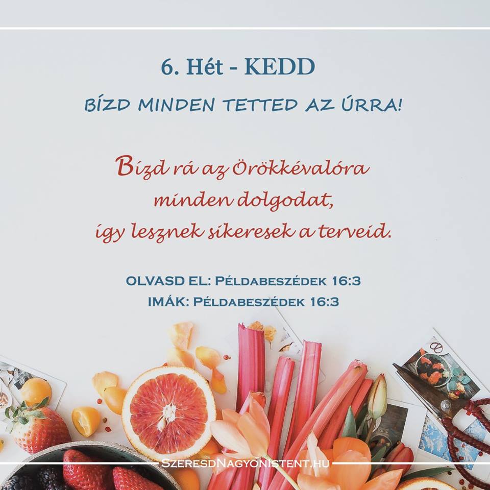 Bízd minden tetted az Úrra! Mikor kezdted legutóbb úgy a napodat, hogy mindent Istenre bíztál? Gyakran, mikor az ébresztő felkelt minket, úgy érezhetjük magunkat, mintha egy akadályverseny előtt állnánk. Minden jó szándékunk ellenére a kötelesség, felelősség és a napi teendők irányítják aktivitásunkat. Észre sem vesszük, és már fordíthatjuk is a naptárat a következő hónapra. Túléltünk, […]