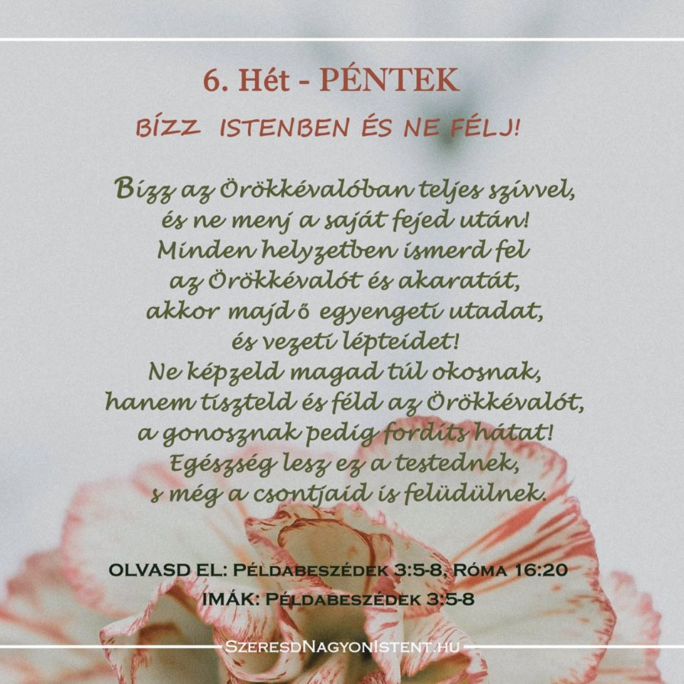 6. heti kihívás: Gondolj vissza a tanulmányra és határozd el, hogy melyik lesz az az egy, megvalósítható változtatás, mely segít ezentúl legyőzni a félelmeidet és aggodalmaidat. Írd be a naplódba, hogy könnyebben el tudj vele számolni. Isten Igéjét helyezzük gyakorlatba az életünkben… ne csak olvassuk, hanem ÉLJÜK is meg az Ő igazságait!!!