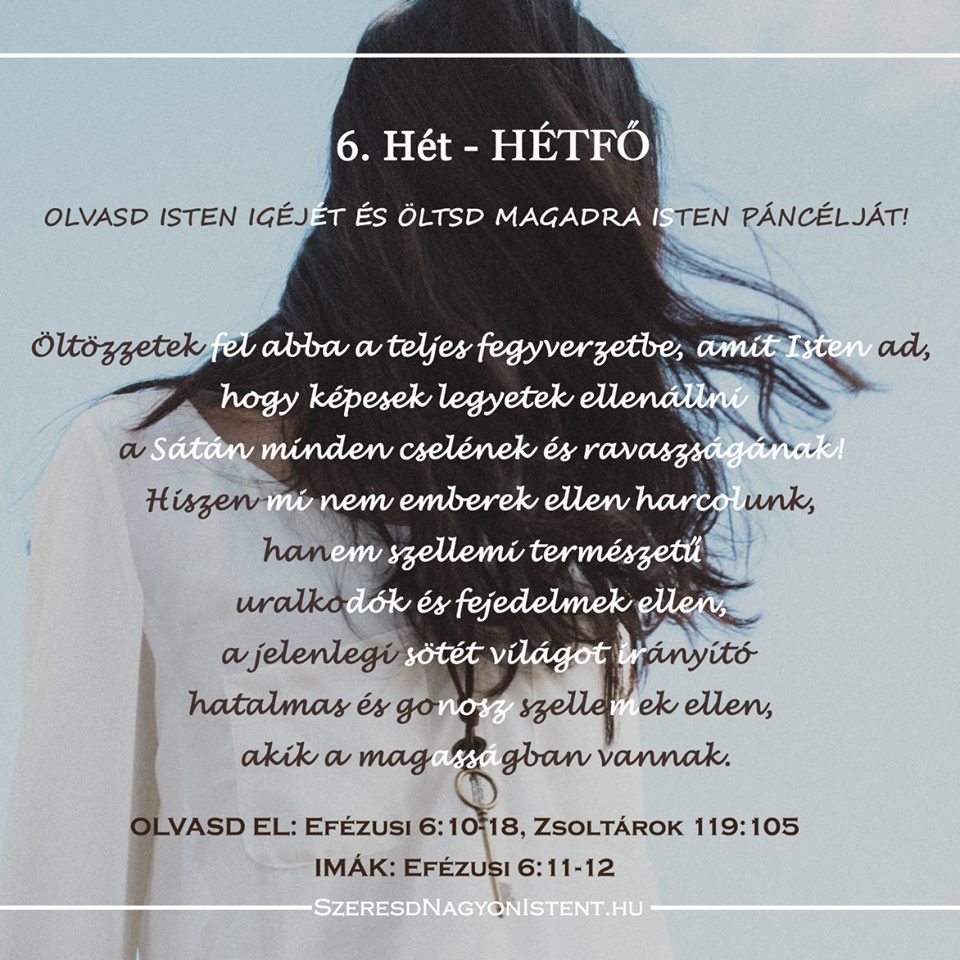 Olvasd Isten Igéjét és öltsd magadra Isten páncélját! Ez a világ a mi harcterünk. Mindemellett, tökéletesen fel vagyunk szerelve, hogy bármilyen kísértésnek ellenálljunk, és bármilyen próbát kiálljunk. Isten az Ő Szava és Szelleme által felkészített, hogy ellenálljunk az ellenségnek. Mikor azt érezzük, hogy visszavonulnánk, inkább vegyük fel azt a páncélt, melyet Isten adott nekünk ahhoz, […]