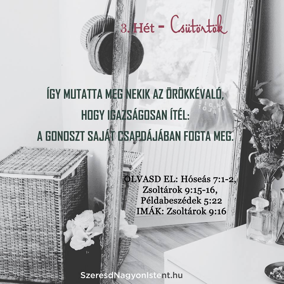 Olvasd el: Hóseás 9:1-9, Ézsaiás 10:1-4 IMÁK: Hóseás 9:9 Láttatok már olyan szelfiket, amelyek néhány másodperccel a katasztrófa előtt készültek? Mint amikor valaki csónakból készít szelfit és az illető mögött kiemelkedik egy cápa a tengerből. Te látod a képen, hogy mi fog történni, de annak, aki a szelfit készíti, nem látja, hogy mi történik. Pontosan […]