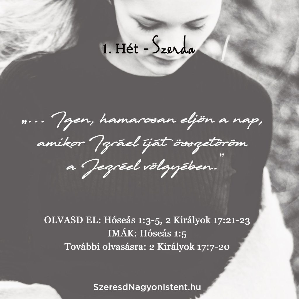 Olvasd el: Hóseás 1:3-5, 2 Királyok 17:21-23 IMÁK: Hóseás 1:5 További olvasmány: 2 Királyok 17:7-20 Mint oly sok más embernek a Bibliában, Gómer fiainak is beszédes nevet választott az Úr. Az első gyermeket, egy fiút, Jezréelnek hívtak, ami azt jelenti „Isten szétszór” vagy „Isten széthint”. Jezréel egy város volt Issakár törzsében, Gilboa hegye mellett, és […]