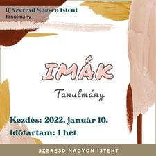 Drága Hölgyek! Szeretettel hívunk a Szeresd Nagyon Istent online női bibliatanulmányozó szolgálat egyhetes tanulmányába, mely alatt az IMÁK Bibliatanulmányozási módszert sajátítjuk el! Új tanulmányunk címe: Az IMÁK Bibliatanulmányozó módszerKezdés: 2022. január 10. (hétfő)Befejezés: 2022. január 16. (vasárnap)Tanulmányi idő: 1 hét Bibliatanulmányozásunk során az IMÁK-módszert használjuk, amely segít mélyebbre ásni és többet kapni annál, mint amit […]