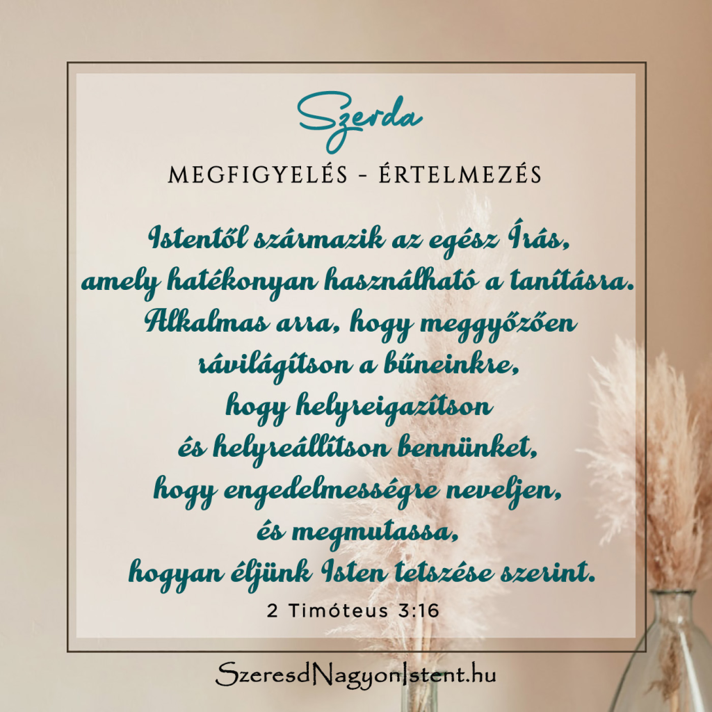 AZ IMÁK BIBLIATANULMÁNYOZÁSI MÓDSZER MIRŐL VAN SZÓ ÉS EZ MIÉRT FONTOS? Mi, a Szeresd Nagyon Istent szolgálói, hisszük, hogy Isten Igéje élő és ható. Hisszük, hogy az Ige szavai kultúrától és időszaktól függetlenül hatalmasak, valóságosak és relevánsak az életünkben. Azzal is tisztában vagyunk, hogy a Bibliát egy adott kultúra adott közönségének írták egy adott időben. […]