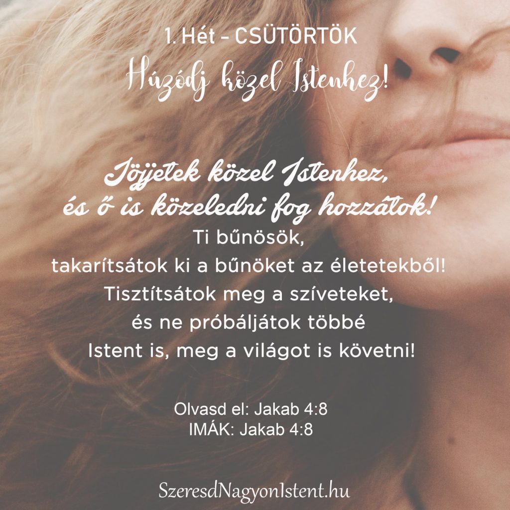 Húzódj közel Istenhez! Olvasd el: Jakab 4:8IMÁK: Jakab 4:8 Ha Isten felé lépünk, Ő soha nem fog minket elutasítani. Mindig karjába zárja az őszinte megtérőt, aki hozzá kiált, hogy mossa tisztára. Itt Isten arra hív, hogy Őt válasszuk és megújuljon az életünk – hogy a szívünket teljesen átadjuk Neki és meghittebb kapcsolatba kerüljünk vele. Hogy […]