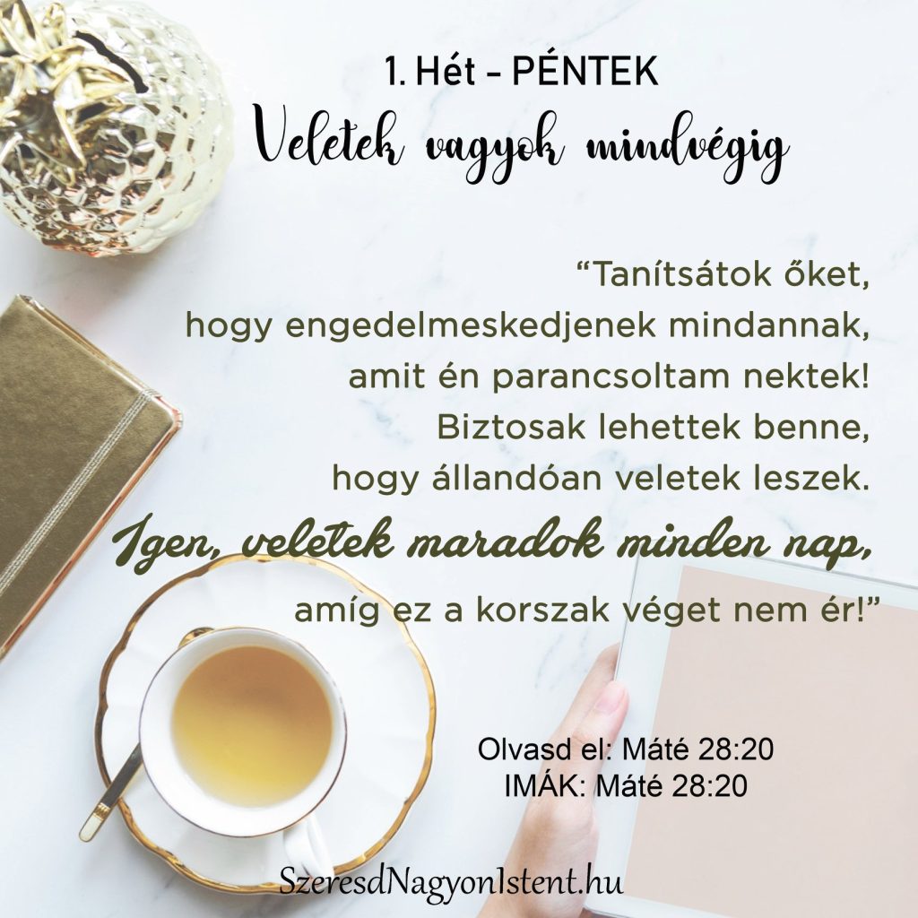 Veletek vagyok mindvégig Olvasd el: Máté 28:28IMÁK: Máté 28:20 Jézus elküldte a tanítványait, hogy menjenek el és adják tovább a Jó Hírt, de biztosította őket, hogy az Ő jelenléte, ereje és védelme velük lesz és gondoskodóan biztosít mindent, amire szükségük lesz az úton. Krisztus az Emmánuel, ami azt jelenti „velünk az Isten”. Magabiztosan haladhattak előre, […]