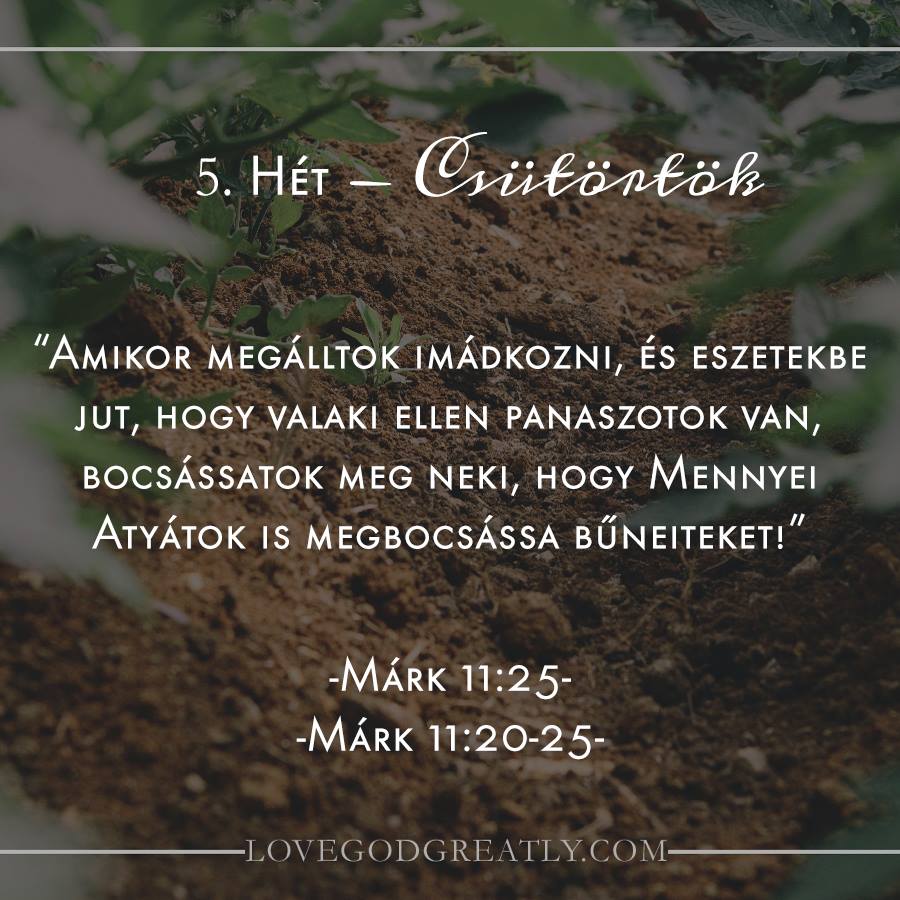 Olvasd el: Márk 11:20-25 IMÁK: Márk 11:25 Szeretni Istent annélkül, hogy szeressük az embereket – lehetetlen. Isten elvárja tőlünk, hogy ugyanolyan könyörületesek legyünk másokkal szemben, amilyen könyörületes volt Ő hozzánk. Isten annyira komolyan elvárja népétől, hogy bemutassuk az Ő megbocsátását és könyörületességét másokkal szemben, hogy elutasítja imáinkat amikor nem vagyunk hajlandóak megbocsátani. Melyek azok a […]