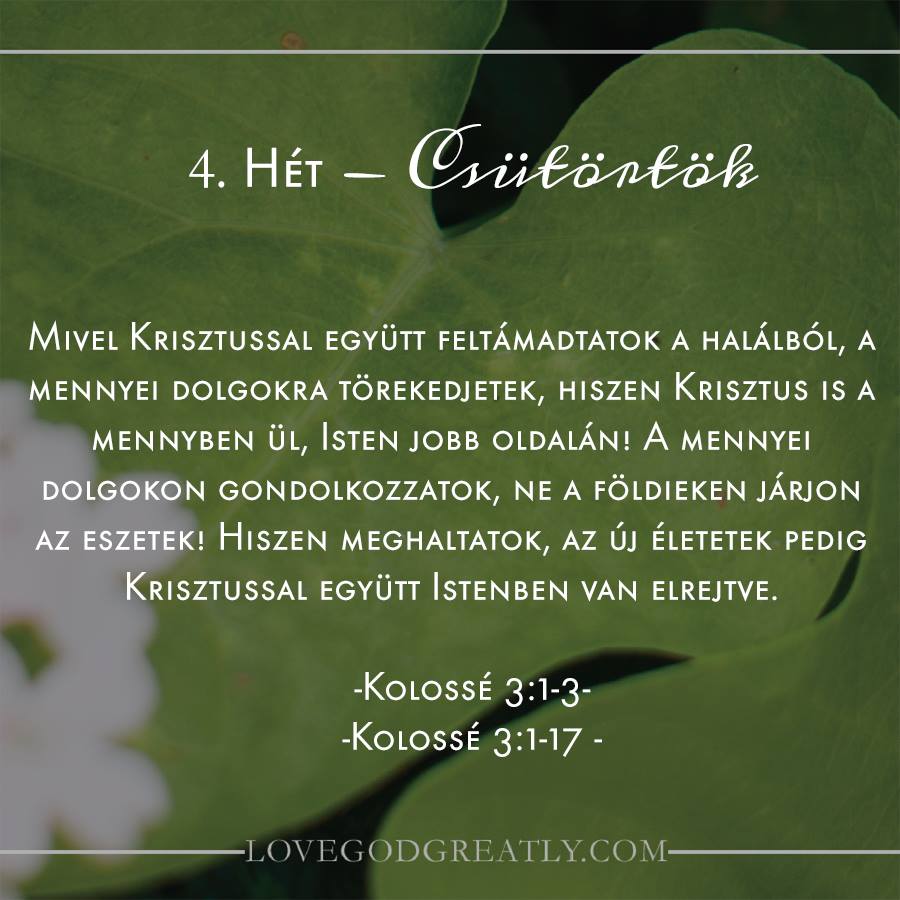 Olvasd el: Kolossé 3:1-17 IMÁK: Kolossé 3:1-3 Attól kezdve, hogy egy keresztyén átadja életét Jézus Krisztusnak, megváltoznak a motivációi és kívánságai. Onnantól kezdve Isten dolgaira fókuszál, mert Isten nagy szeretete és érte hozott áldozata motiválja őt. Attól függően, hogy valaki mire használja értelmét, az meghatározza, hogy mivé válik keresztyén emberként. Ha olyan dolgokra fókuszálunk, amelyek […]