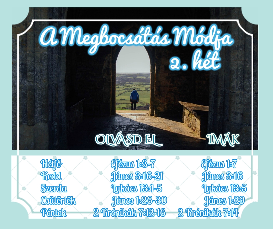 A következő hetünk témája: A megbocsátás mélysége Látjuk majd, hogy Isten hűséges és igazságos, irgalmas, áldozatra kész, szerető, jóságos, megmentő… Hogy valójában milyen mélyen érez irántunk, azt teljes mértékig sosem fogjuk megtudni, a mi emberi felfogásunk kevés hozzá. Egy gyermekének el is mondja: Olyan magas fel sem érhetem Olyan mély hogy meg sem mérhetem Olyan […]