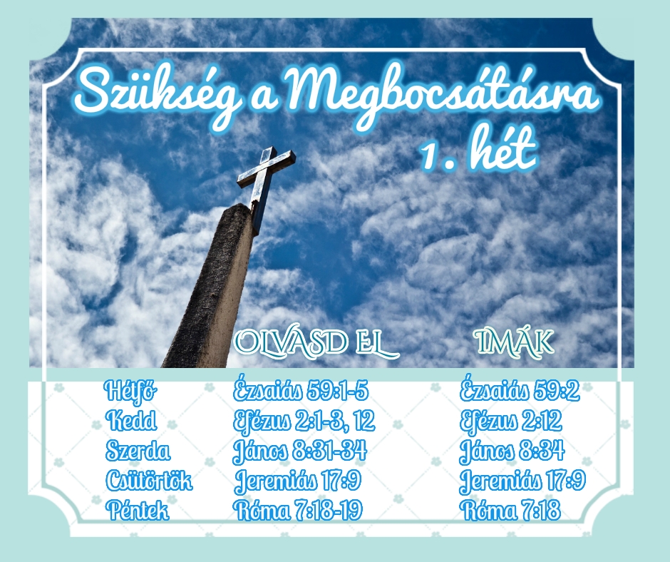 Áldott Úrnapját mindenkinek! Hozom a következő hetünk beosztását. S miközben picit belenézünk most az elkövetkezendő napok programjába, arra hívlak benneteket, hogy álljunk meg, és nézzünk vissza. A mögöttünk álló héten láthattuk, hogy szükségünk van a megbocsátásra, mint egy falat kenyérre. Istent hibáztattuk, amikor nem kapunk segítséget, pedig valójában a mi vétkeink, a bűnös természetünk szakított […]