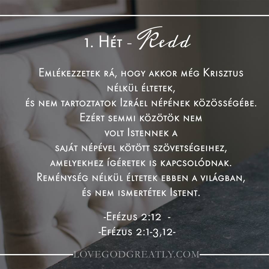 Olvasd el: Efézus 2:1-3, 12 IMÁK: Efézus 2: 12 Az Isten nélkül élő ember egy rémísztő, ijesztő teremtmény. Krisztus nélkül lázadók, engedetlenek, öncélúak, önzőek, halottak és reménytelenek vagyunk, akik saját bűneinkben fuldokolunk. Bárkit és bármit dicsőítünk Istenen kívül. Márpedig Jézus Krisztus az egyedüli módja annak, hogy Istennel megbékéljünk. A bűn valóságától megszilárdult szív valószínűleg elutasítja […]