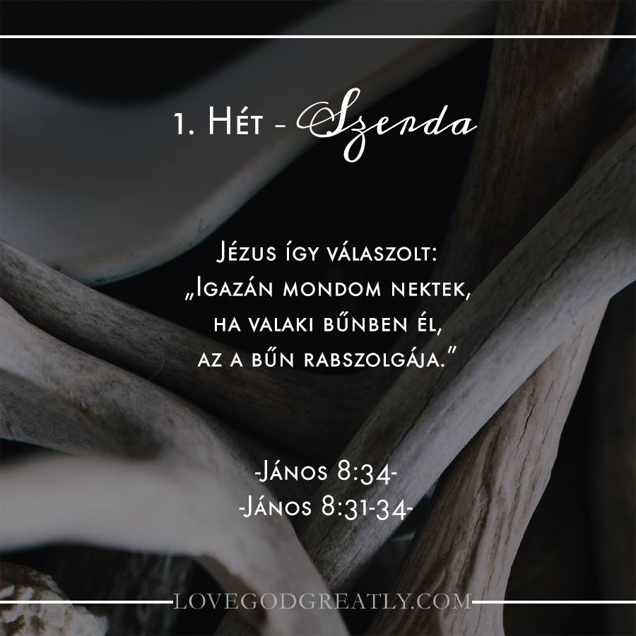 Olvasd el: János 8:31-34 IMÁK : János 8:34 Könnyű elcsábulni attól, amit a világ kínál. Eláraszthat bennünket az elismerés, gazdagság, hatalom, előléptetés, birtoklas iránti vagy. A bűn gyakran úgy mutatkozik be, mint amitől szabaddá, vidámmá es erőteljessé válunk. Az igazság azonban az, hogy a bűn szolgasorba dönt. A bűn megtévesztő módon összeköt es megláncol, hogy […]