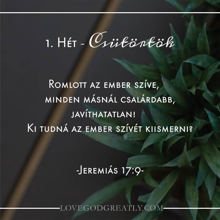 IMÁK :Jeremiás 17:9 Becsapjuk magunkat, ha azt hisszük, hogy Isten nélkül le tudjuk győzni a bűnt. A bűn nagy ereje abban áll, hogy megtévesztő. A bűn ott lappang bennünk, amíg próbára nem vagyunk téve. Úgy gondoljuk, hogy urai vagyunk a helyzetnek. Amíg meg nem értjük teljesen, hogy akár a “legkisebb” bűn mennyire gonosz és sértő […]
