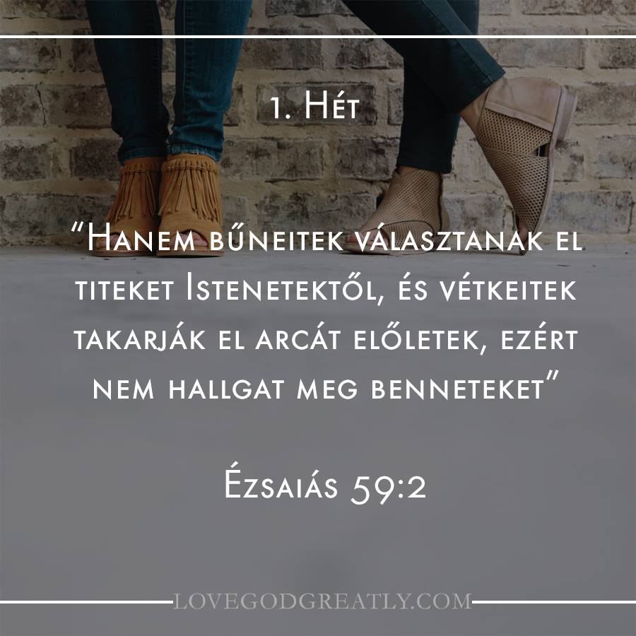 „…hanem bűneitek választanak el titeket Istenetekről.” Ézsaiás 59:2 Üdvözöllek az Isten megbocsátott neked című tanulmányunkban! Remélem, hogy legalább annyira izgatottan várod az együtt tanulmányozást, mint mi. Ez a tanulmány nem lesz egy egyszerű menet. Ugyanúgy meg fogjuk tapasztalni a bűn és az Isten nélküli élet súlyos láncait, mint a megbocsátás, elfogadás és szabadság magasságait. De […]