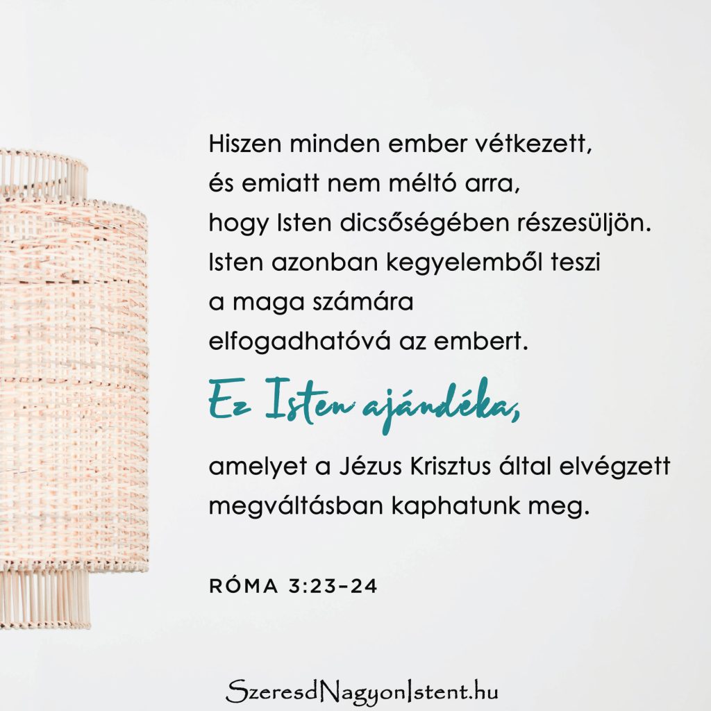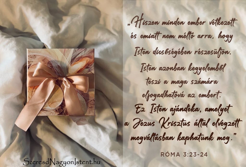 „Hiszen minden ember vétkezett, és emiatt nem méltó arra, hogy Isten dicsőségében részesüljön. Isten azonban kegyelemből teszi a maga számára elfogadhatóvá az embert. Ez Isten ajándéka, amelyet a Jézus Krisztus által elvégzett megváltásban kaphatunk meg.” – Róma 3:23-24 „Nem akarok hallgatni rád és szót fogadni!” Egy kisszéken ülök egy apró bűnössel szemben. A kezei ökölbe […]