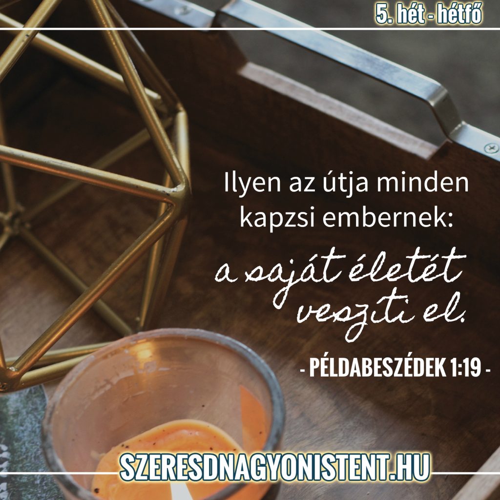 Olvasd el: “Az igazak csak jót kívánnak, az istentelenek viszont haragra számíthatnak. Van olyan, aki bőven adakozik, és annál inkább gazdagodik, és van olyan, aki visszatartja a járandóságot, mégis nagyon szűkölködik. A mással jót tevő ember bővelkedik, és aki mást felüdít, maga is felüdül. Átkozza azt a nép, aki búzáját visszatartja, annak fején viszont áldás […]