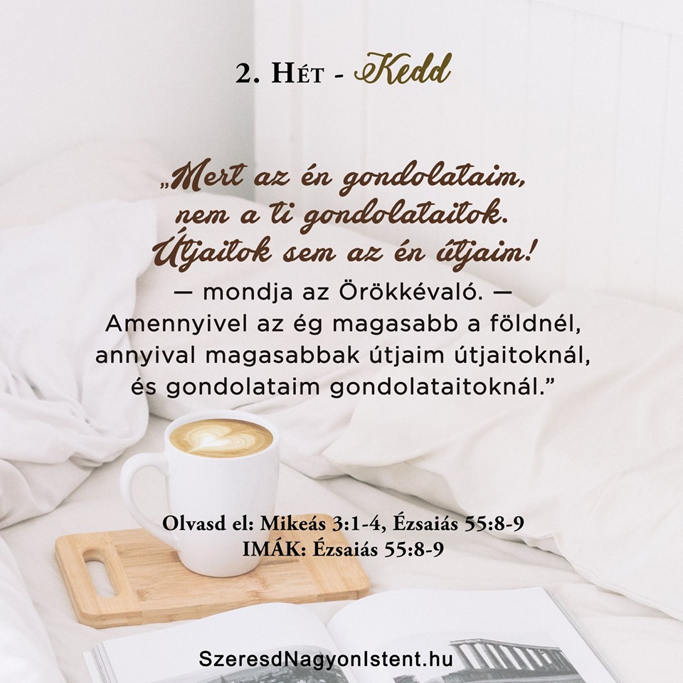 Olvasd e!: Mikeás 3:1-4, Ézsaiás 55:8-9 IMÁK: Ézsaiás 55:8-9 Mikeás könyvének mára kirendelt Igeverseinek eredeti hivatása az volt, hogy feddésül szolgáljanak Izráel és Júda fejedelmeinek. Tudniuk kellett volna, hogy mi az igazság. Tudniuk kellett volna, hogy mi a jó és mi a rossz, hiszen az ő kezükben volt a hatalom a törvényen kívül élők megbüntetésére. […]