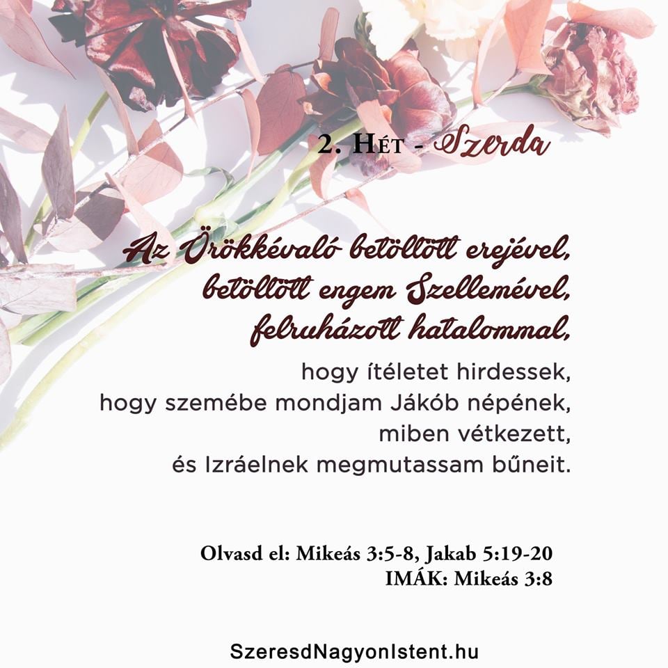 Olvasd el: Mikeás 3:5-8, Jakab 5:19-20 IMÁK: Mikeás 3:8 Tegnap láthattuk, ahogy az Ige megfeddi a vezetőket, ma pedig arról olvashatunk, ahogy a hamis prófétákat korholja. Ezek a hamis próféták nem Isten szavait beszélték, hanem a sajátjaikat. Azt mondták, amit az emberek hallani akartak. Éppen ezért kellett megszégyenülniük és megalázkodniuk. Ezzel ellentétben Mikeás pont arról […]
