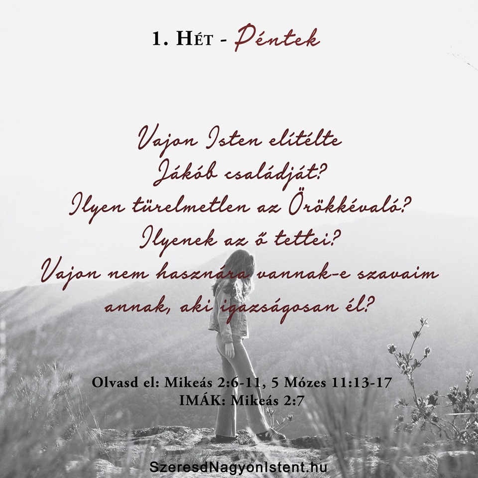 Olvasd el: Mikeás 2:1-5, 2 Krónikák 36:15-21 IMÁK: 2 Krónikák 36:15 Mikeás ma azokhoz szól, akiknek a „kezében hatalom van”. Ezek a gazdagabb polgárok szemet vetettek a szegény emberek földjére, és azzal töltötték a napjaikat, hogy fontolgatták, hogyan szerezhetnék meg azok tulajdonát. Nem tudom, nálatok hogy van. De ahol én élek, a pénz egyenlő a […]