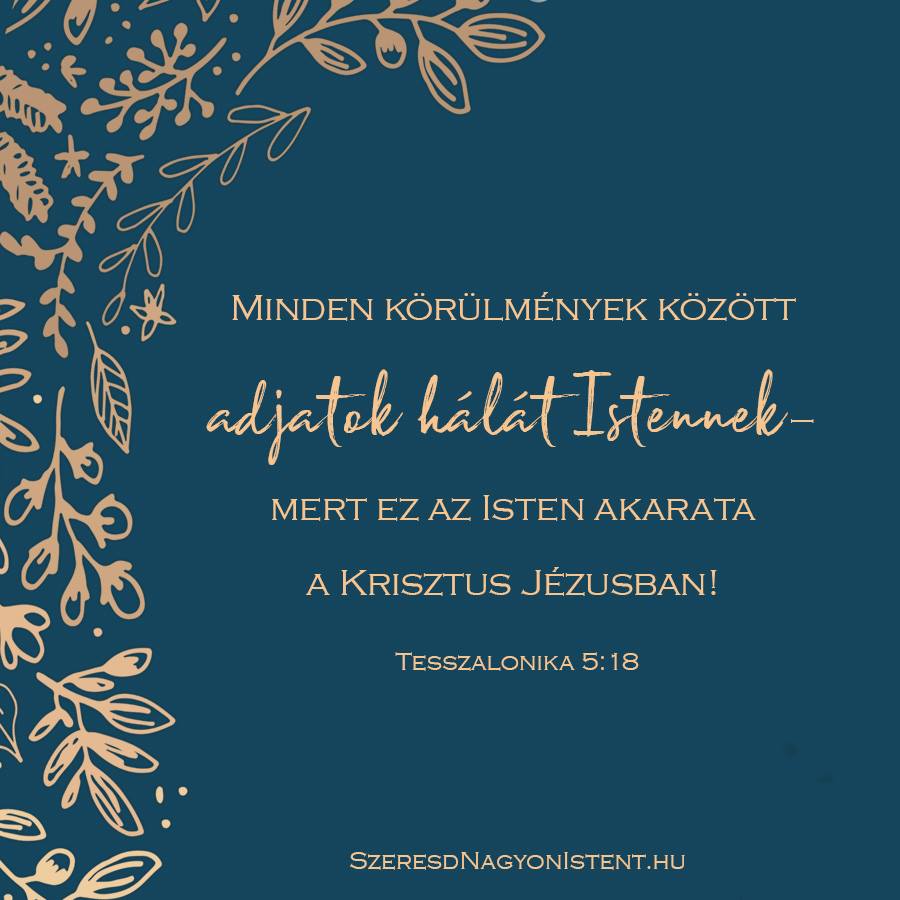 „Minden körülmények között adjatok hálát Istennek…” – 1 Thesszalonika 5:18 Nem gondoljátok, hogy pont azok a legnehezebb parancsolatok, amelyek a legtisztábbak és legszókimondóbbak, például „mindenkor örüljetek”, „szüntelen imádkozzatok”, és a mai Igevers: „minden körülmények között adjatok hálát”? Ezek azért nehezek, mert nincsenek kiskapuk, nincs helye a kifogásoknak. Egyszerűen és nyíltan le van írva, hogy Isten […]