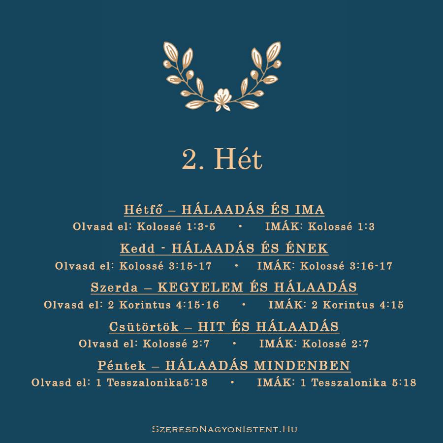 Mindenért adjatok hálát – 2. hét / 1. nap