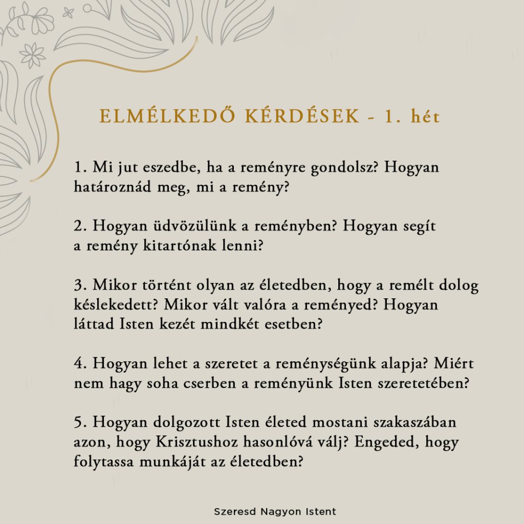 Őrizd meg a reményt! – 1. heti elmélkedő kérdések és összefoglaló