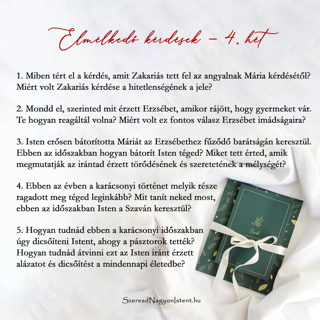 4. heti kihívás: Mielőtt elborítanának a karácsonyi tennivalók, határozd el, hogy a hét minden napján Istennel töltesz valamennyi időt! Ő az oka annak, hogy van mit ünnepelnünk az év ezen szakaszában! Hogy is lehetne méltóbban ünnepelni, mint vele tölteni az időnket minden nap, áldani Őt hűségéért és szövetsége ígéretéért, valamint Jézusban elküldött ajándékáért? Fejezze ki […]