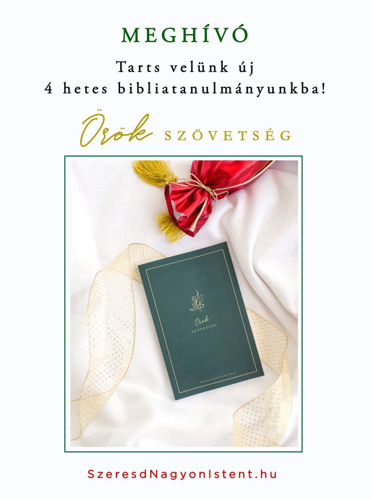 Szeretettel hívunk és várunk a Szeresd Nagyon Istent online női bibliatanulmányozó szolgálat következő tanulmányába! Az új tanulmány címe: Örök szövetség A kezdés időpontja: 2022. november 7. Ismersz olyan keresztény hölgyeket, akik vágynak arra, hogy mélyre ássanak Isten Igéjében és szívesen lennének részesei egy online keresztény közösségnek? Ha igen, oszd meg velük az alábbi képet és […]