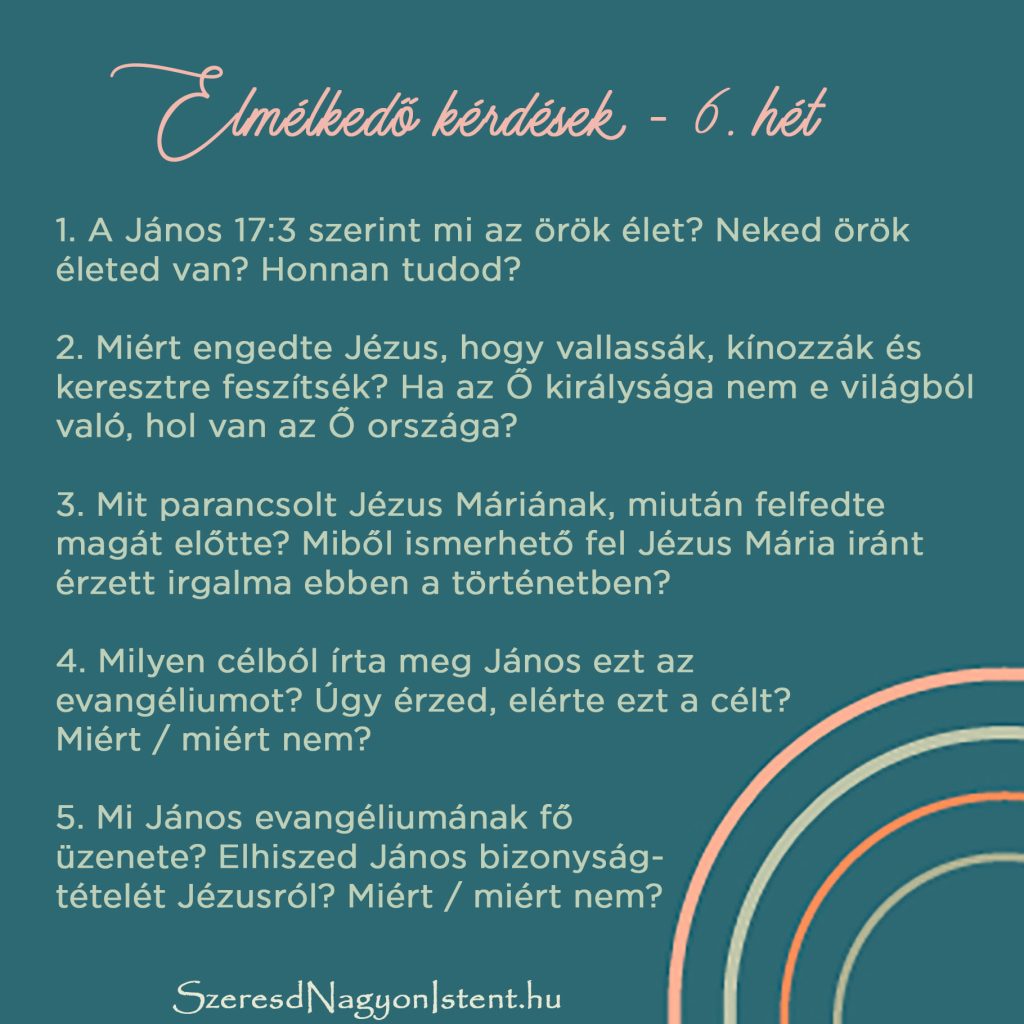 Örökkévaló bizonyosság – János evangéliuma – 6. heti elmélkedő kérdések