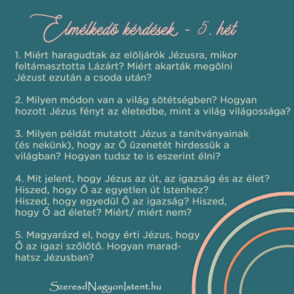 Örökkévaló bizonyosság – János evangéliuma – 5. heti elmélkedő kérdések