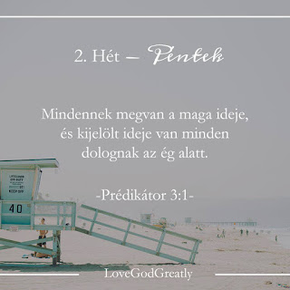 Olvasd: Préd. 3:1-8 IMÁK: Préd. 3:1 Meghatározott ideje és időszaka van minden célnak az ég alatt. A megfelelő tevékenység a megfelelő időben dicsőséget hoz Istennek, mert beleillik az ő gyönyörű és teljes tervébe. Isten szuverén és minden az Ő irányítása alatt van. Semmi – ami történik velünk, vagy körülöttünk – nem véletlen, vagy kaotikus. Mindannyian részesei […]