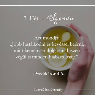 Olvasd: Préd. 4:1-6 IMÁK: Préd. 4:6 Salamon megfigyeli, hogy mennyi erőszak és szenvedés zajlik a földön és irigyli a halottakat. Azt is megjegyzi, hogy a szorgalmas igyekezet irigységet okoz. Arra a következtetésre jut, hogy jobb, ha kevesebbet birtoklunk de békével, mint hogy sok vagyonunk legyen de aggodalom és stressz kövesse. A hívők is egy bukott világban […]