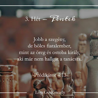 Olvasd: Préd. 4:13-16 IMÁK: Préd. 4:13 Salamon megjegyzi, hogy jobb ha valaki szegény, fiatal és bölcs, mint ha öreg, ostoba és gazdag lenne, mert a szegény fiatal felnőhet és lehet belőle gazdag király. De még egy gazdag, híres királynak is egy adott pontban lesznek olyan követői, akik nem tisztelik, nem tapsolnak neki és nem is fognak […]